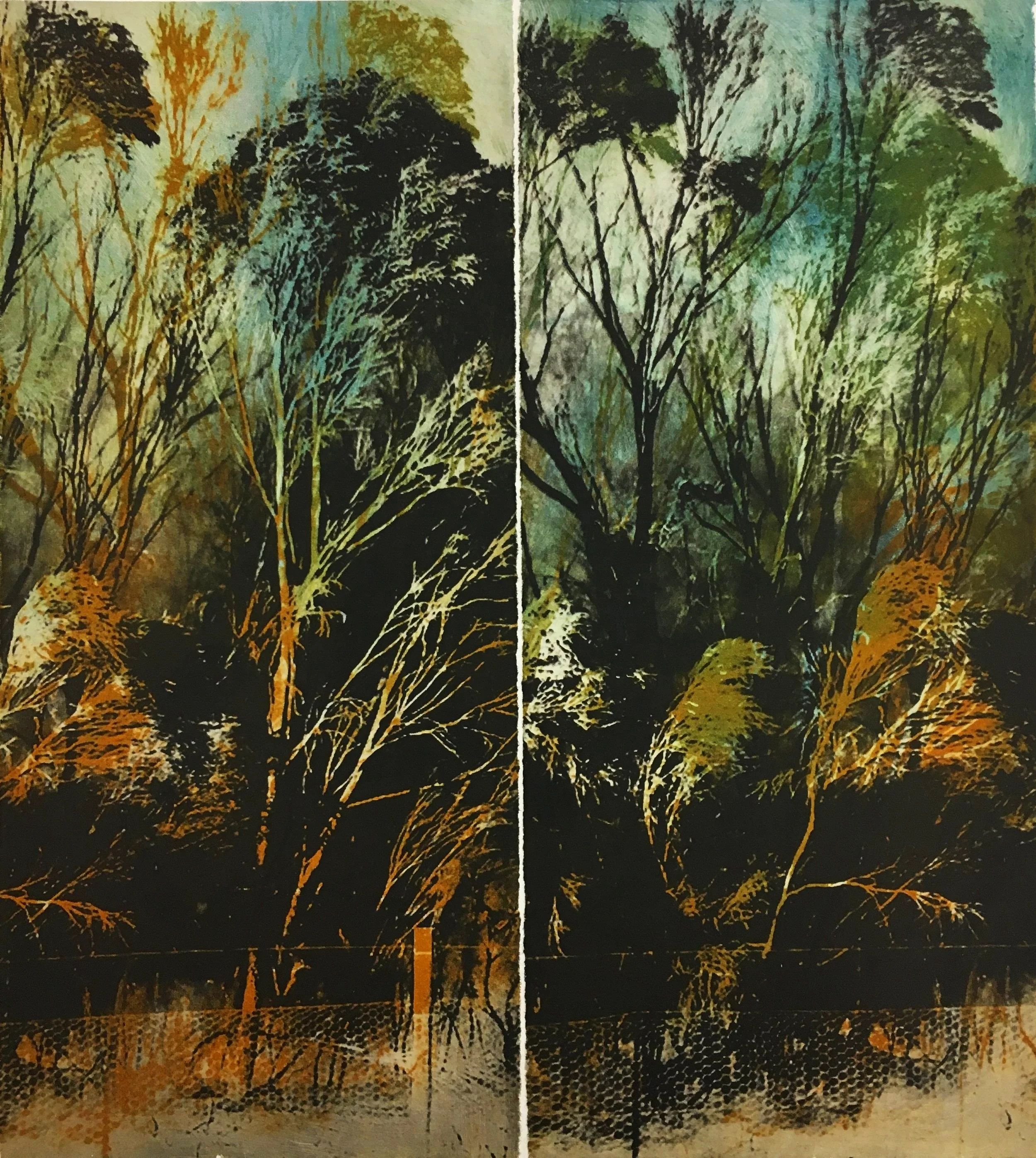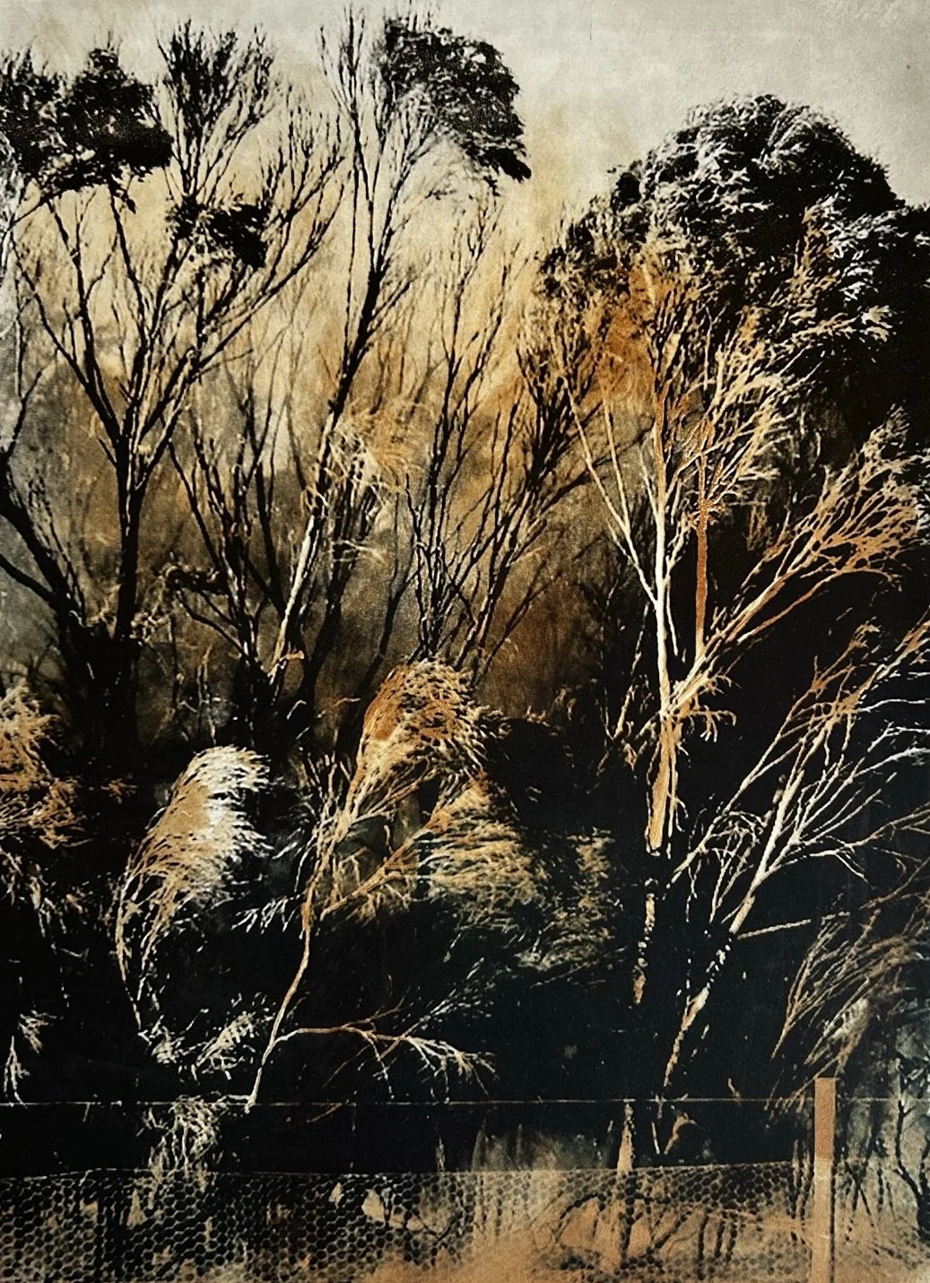 Nature is my biggest inspiration, and I aim to capture a tranquillity and calm in my work. The Australian landscape, with its unique features and colours, shape my creations, especially trees layered over shifting tones of time and weather.